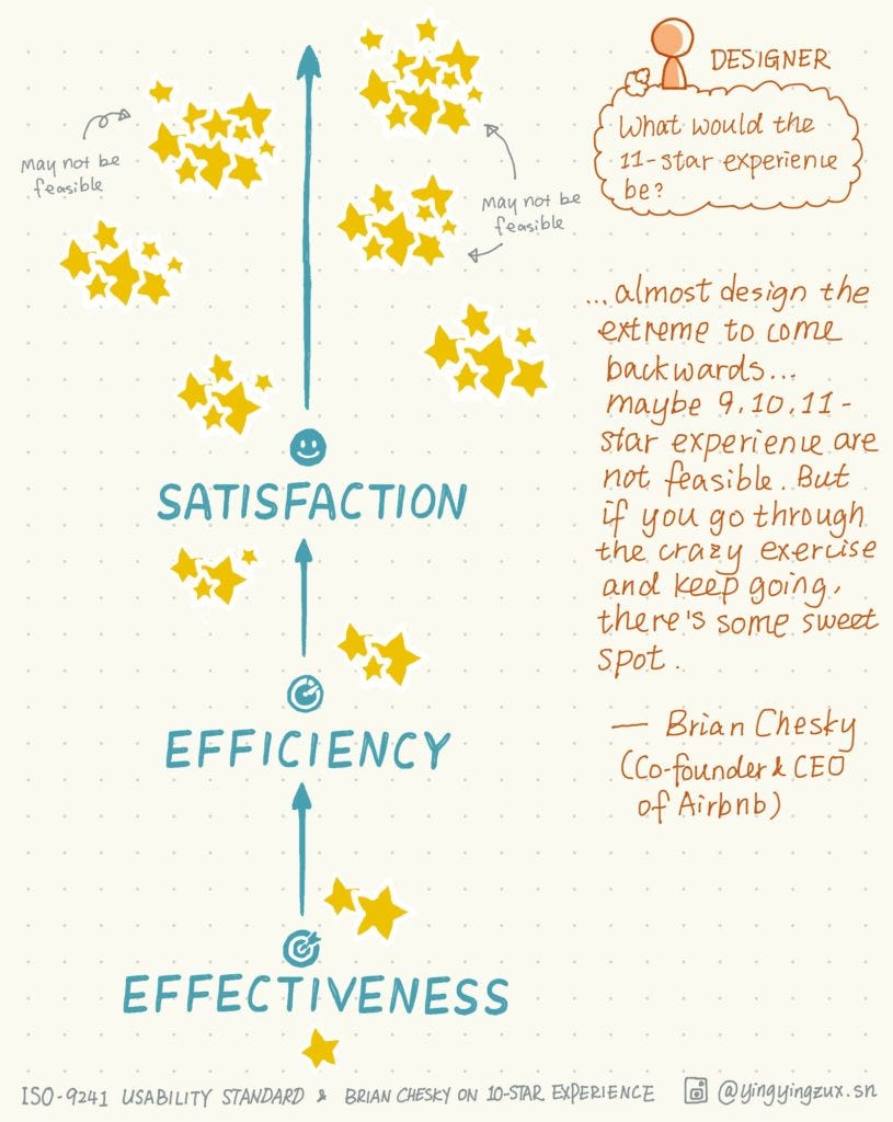 Throughout the process, work with your Product Manager partner to evaluate them based on the project scope / Work with your engineering partner to review feasibility. It's true that you've been working with them since the beginning. You understand the project scope. You know that engineers have little time for any fancy new UI. But, do not let that limit your imagination on a 10-star experience. At least you can talk about what you’re aiming for.