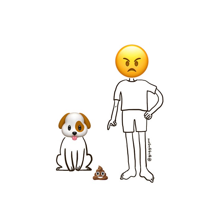 ๐ , ๐ถ, ๐ฉ: A dog did its business where it shouldn't have.