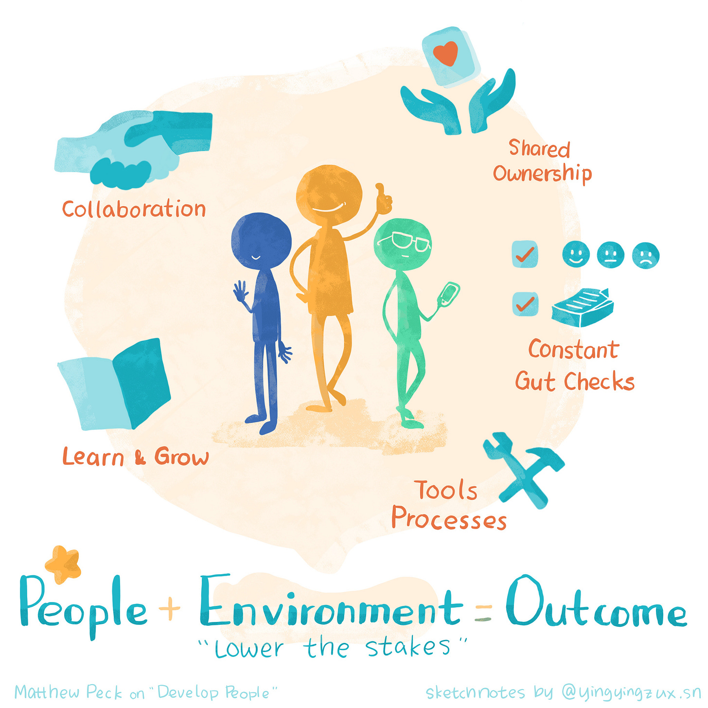 Sketchnotes for my coworker’s excellent talk: From Developing Software to Developing People.