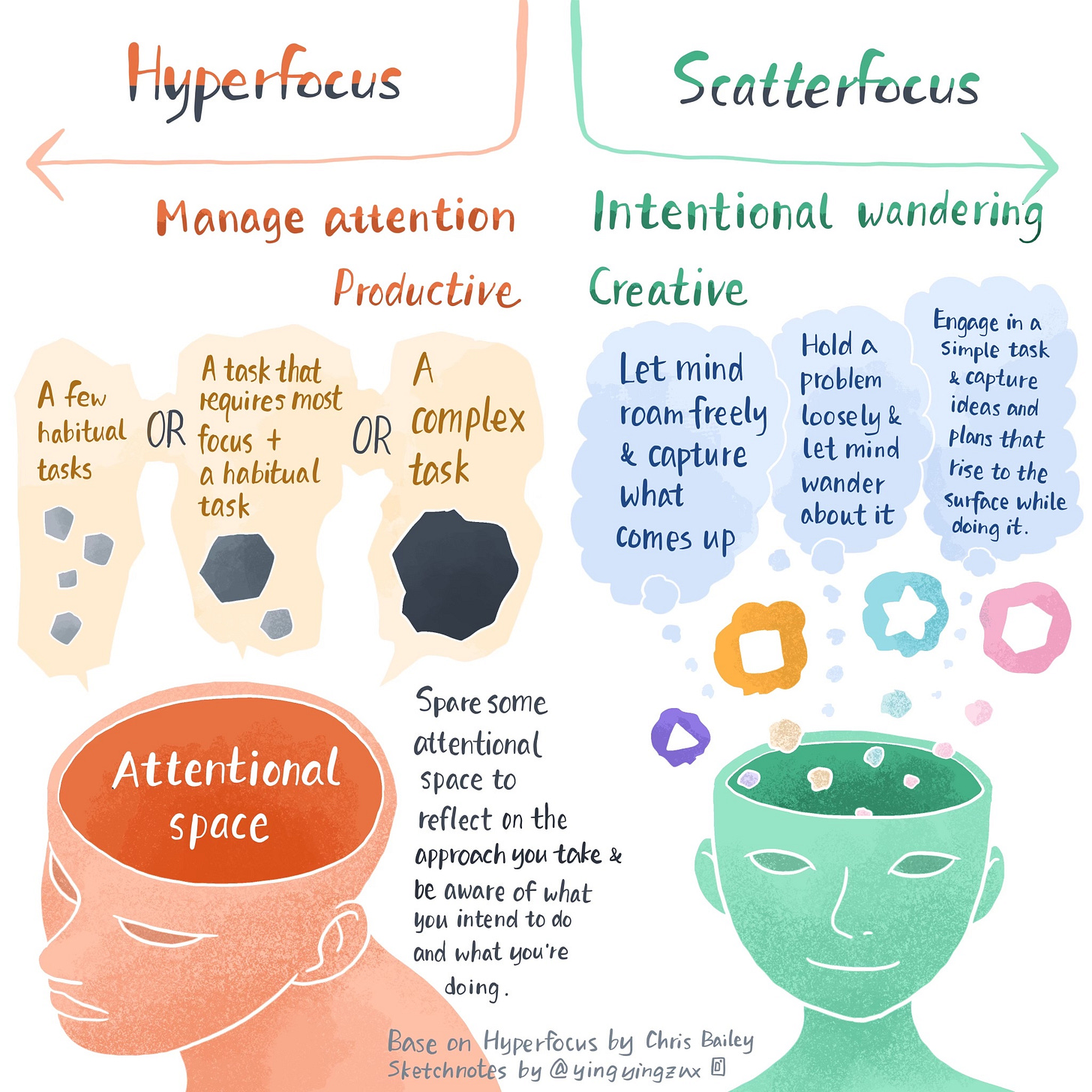 Hyperfocus, scatterfocus: improving personal productivity and creativity with two modes of focus