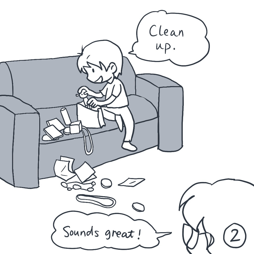 In that moment, I had several options: tell her “clean up now,” help her do it, or get upset. But I chose to ask her a question and let her figure it out herself.