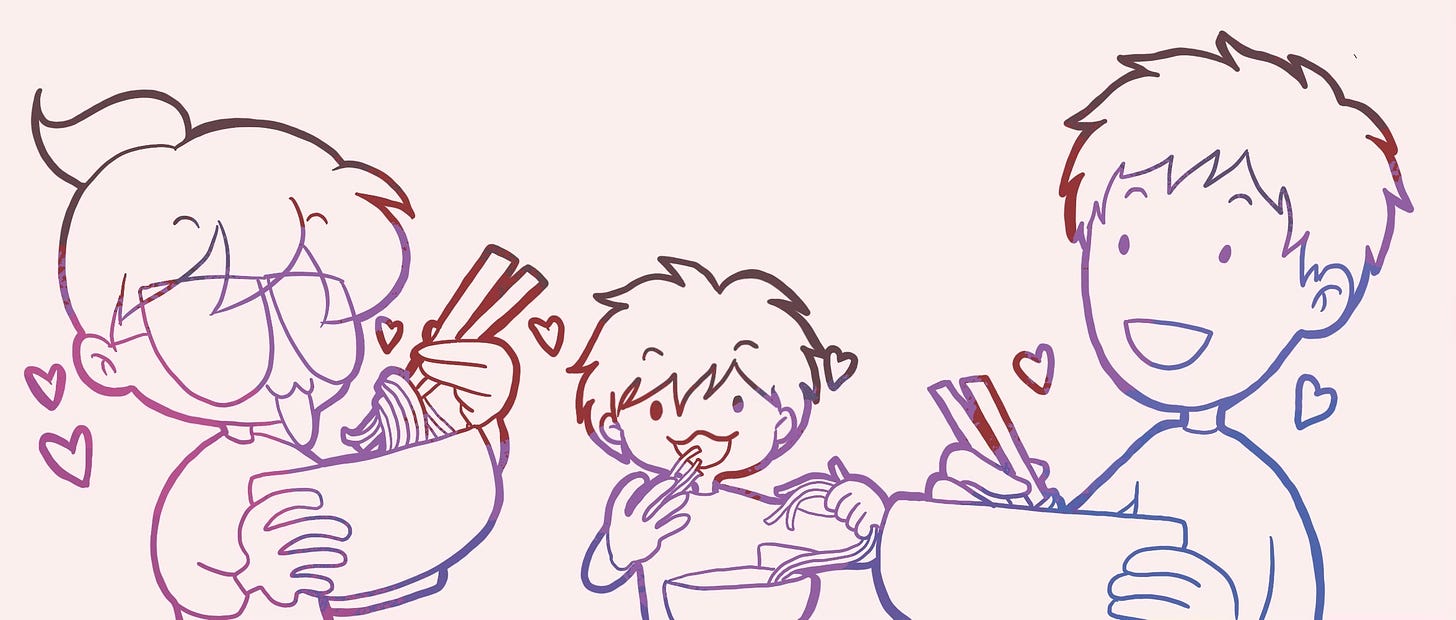 I couldn't resist drawing a simple and heartwarming picture of my family of three enjoying noodles together.
